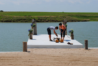 At the end of a long day, Tessa, Liz, and I relaxed on the dock that would eventually hold the couple as they said their vows.