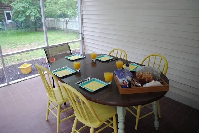PS - I bought those 4 chairs from Craigslist and painted them yellow and the table was given to us by other sister-in-law Kelly and I painted the legs with some leftover sample paint.